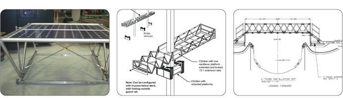 MEI now can offer specific design concepts to meet a customer's requirements. We base this on an extensive development of truss configurations, features and construction types. We have a large database of 3D CAD models and assemblies, can quickly generate preliminary drawings and concept models for customer review, and provide rapid prototype models. We can also perform preliminary sizing for strength and stiffness (ready for independent certification following product design), and product installation recommendations.