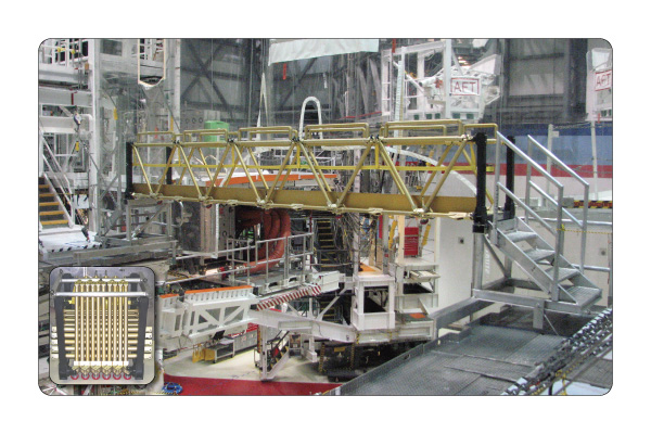 MEI has worked closely with United Space Alliance, LLC (USA) who licensed our truss technology and co-developed it for space-related applications.  Under this joint development IR&D project, the E-truss technology matured, and numerous test hardware items were designed, analyzed, and tested. A notable product of this co-development effort was a new versatile work platform designed, built, and transferred to NASA for critical access to the Space Shuttle vehicles at Kennedy Space Center.  Following completion of this joint development effort, MEI continued its own independent development activity, subsequently developing a family of deployable truss structures as described in this website.