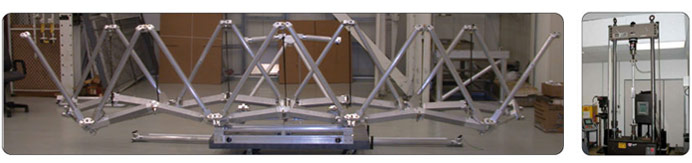 To date, we have jointly tested several configurations of the S-1 and S-2 trusses as deployable platforms & towers. Formal structural testing was performed on end-supported, cantilever-mounted and base-mounted/ center-mounted configurations, along with weld testing and component load/deflection testing. This has included special mounting platforms, preloaded joint testing, and a limited degree of powered actuation testing.